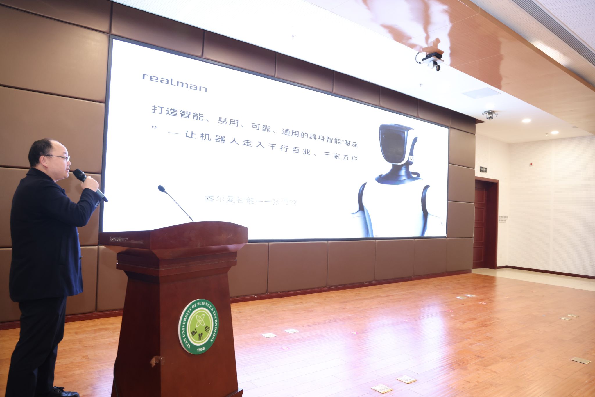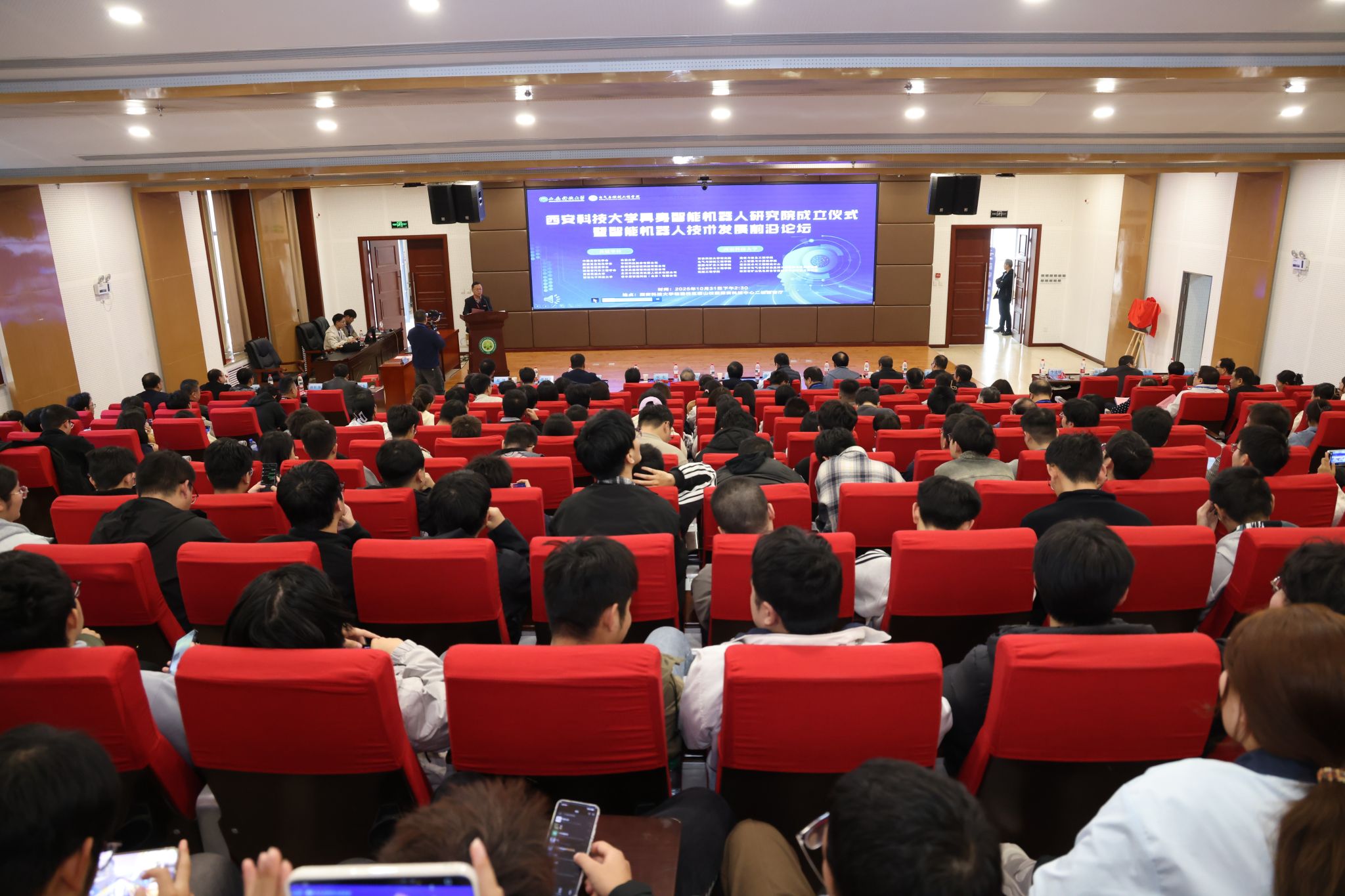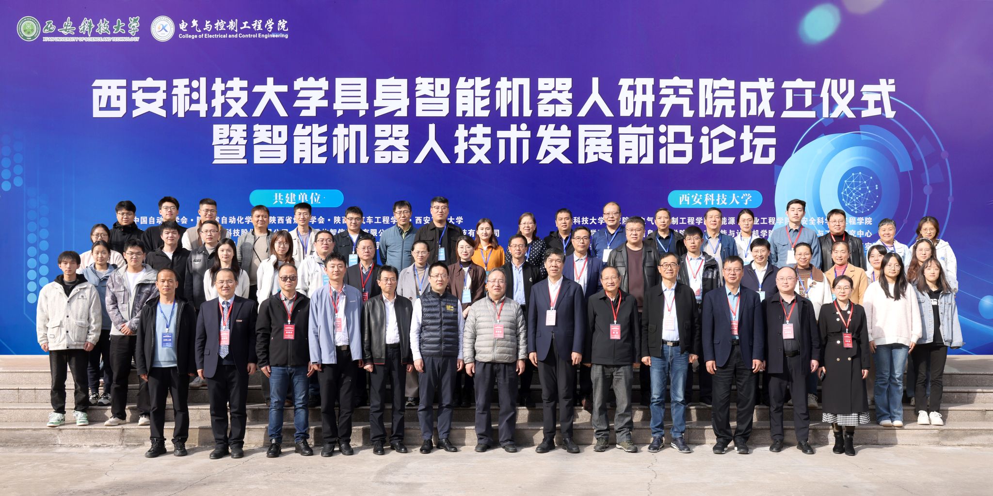 10月31日下午,雷竞技RAYBET最新具身智能机器人研究院成立揭牌仪式暨智能机器人技术发展前沿论坛,在我校临潼校区骊山校园煤炭科技中心二楼报告厅举行。中国自动化学会具身智能专业委员会副理事长、西安交通大学人工智能学院副院长孙宏滨教授、陕西省自动化学会副理事长、秘书长、西安交通大学自动控制研究所所长曹建福教授、陕西省煤炭学会常务副理事长惠维渊、秘书处干事薛煜亮、陕西省汽车工程学会常务副理事长、陕西汽车集团有限责任公司科技管理部部长刘大鹏、智能感知与图像理解教育部重点实验室副主任、西安电子科技大学人工智能学院执行院长侯彪教授、工信部新能源与智能网联汽车专家、长安大学汽车学院韩毅教授、苏州汇川技术有限公司校企合作西部总经理赵凯、陕西重构智信科技有限公司董事长兼总经理张西京、北京具能创智科技有限公司西北大区总经理刘红艳、北京中科慧灵机器人技术有限公司市场总监尹浩、睿尔曼智能科技(北京)有限公司经理张雨晗等应邀出席,我校副校长文虎,科技处、对外联络与合作处等职能部门以及安全科学与工程学院、人工智能与计算机学院、机械工程学院负责人以及相关学院师生共计300余人参加。揭牌仪式及前沿论坛由雷竞技raybet官方平台党委书记杨华及院长寇发荣主持。